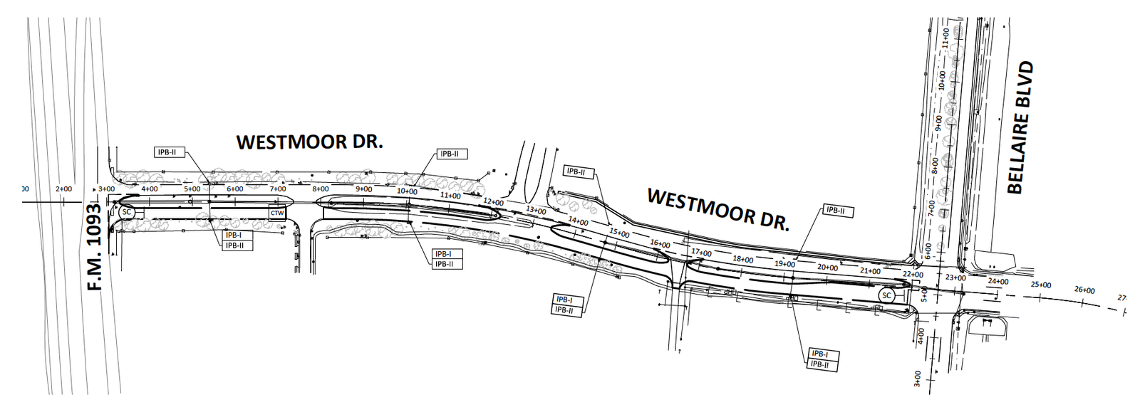 iGET engineering scope covered design of the 4-lane Westmoor Dr – concrete curb and gutter with storm sewer, from Bellaire Blvd to FM 1093, approximately 1900 LF of roadway.